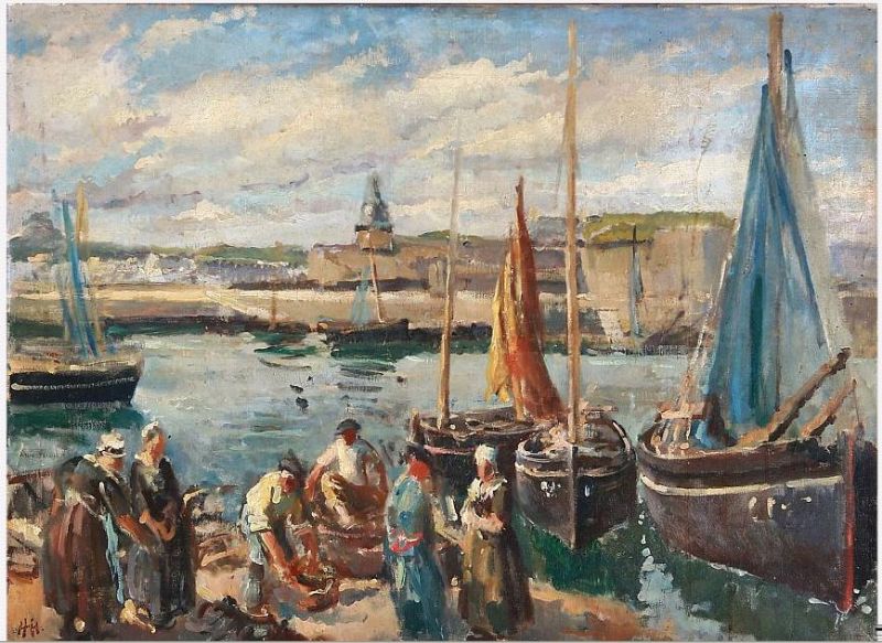 Harbour scene with fishermen