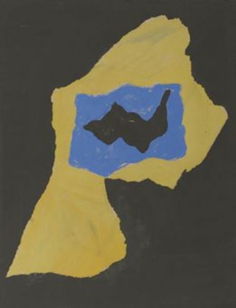 Gouache and paper collage on black paper