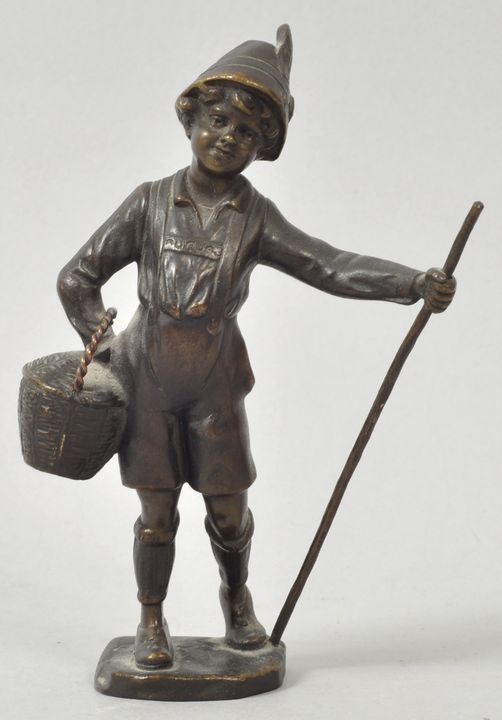 Österreich Bub in Lederhose, mit Henkelkorb und Stecken