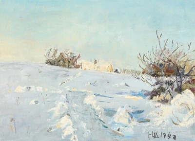 Wintry landscape with farm house