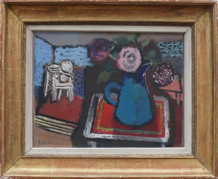 ''Stillleben'' mit Blumen in Krug auf Tisch
