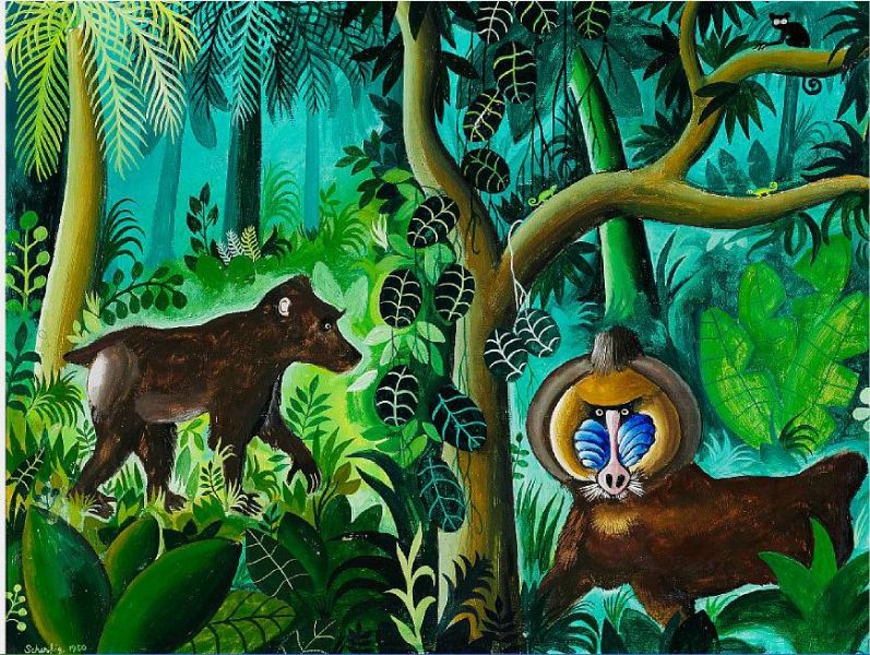 Mandrill and baboon in the jungle