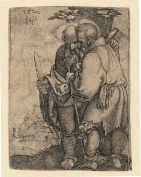 | CHRIST AND THE TWELVE APOSTLES: PLATE VII, BARTHOLOMEW AND MATTHIAS (B. 42; HOLL., P. 44) | |