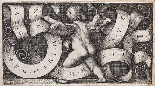 Genius with the alphabet (Bartsch 229, Hollstein P.233)