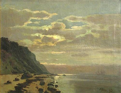 A rocky coast in the moonlight