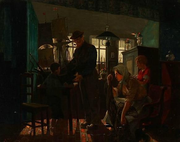 Interior with a boy who gets a model ship