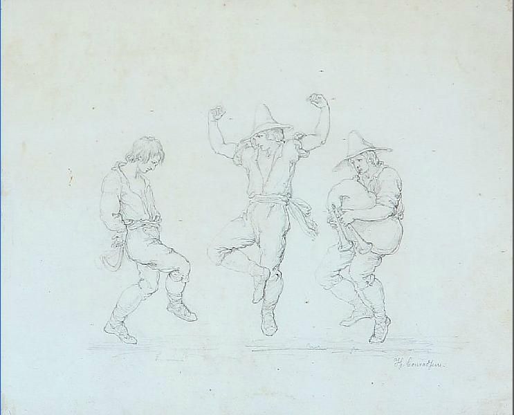 | Three dancing Italians and People scene with a man who is sentenced to death | |