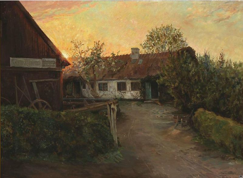 | Sunset at a farm in Gl. Holte, a spring day with newly sprouted fruit tree. | |