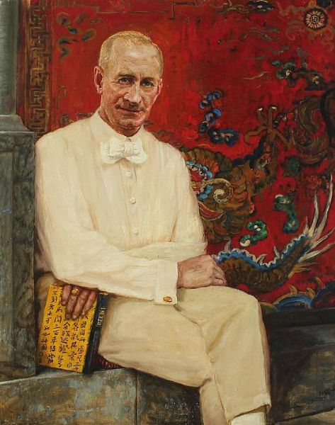 | Portrait of Robert Christensen with his book "Kineseren i sit Rige". | |