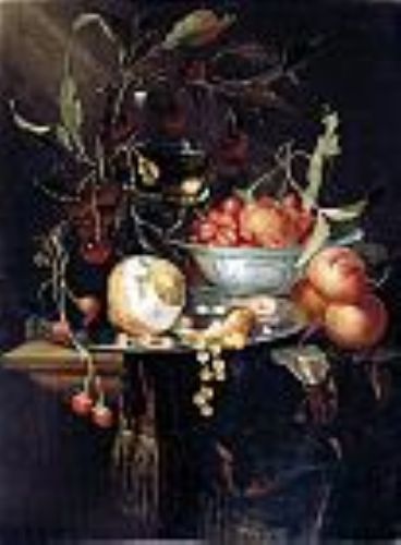 | STILL LIFE OF A PEELED LEMON WITH PRAWNS AND WHITECURRANTS ON A PEWTER DISH, WITH PEACHES AND FRAISES-DE-BOIS IN A BLUE-AND-WHIT | |