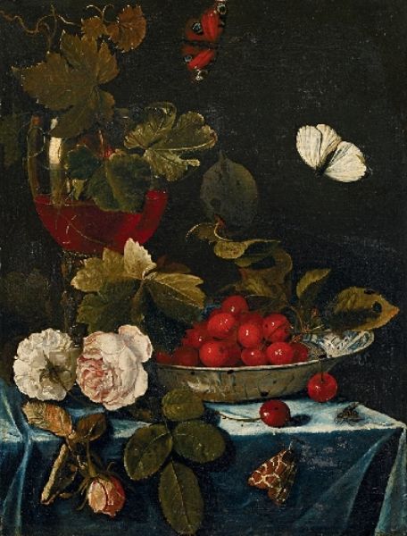 | STILLLEBEN MIT ROSEN, RÖMER UND CHINESISCHER SCHALE MIT KIRSCHEN | |