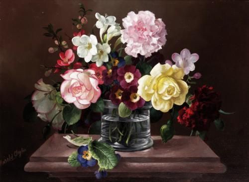 STILL LIFE WITH FLOWERS IN A GLASS VASE