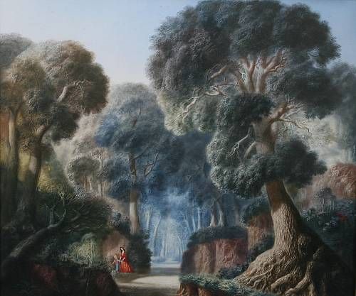 | 'Landscape with Mother and Child', two figures on a track amidst dense woodland | |