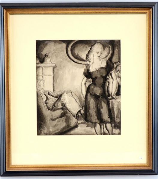 Pen ink and wash on paper