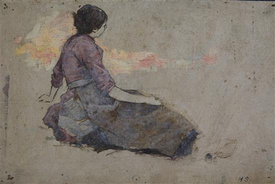 | Sketches of a woman at sunset, a woman on a bridge and a harbour scene | |