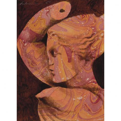 | Gouache with chalk and charcoal on Italian marbleized paper | |