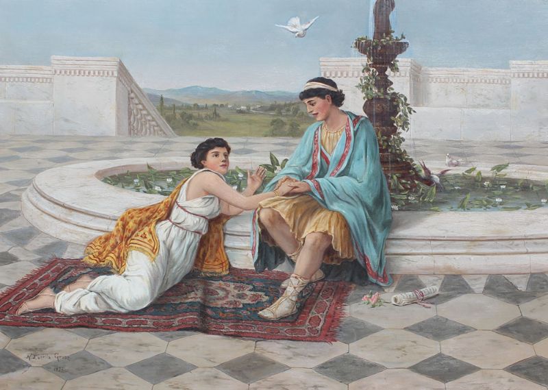 Neoclassical scene with lovers in a courtyard
