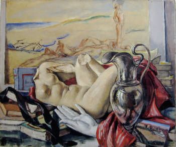 Still life with beach scene beyond