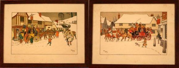 | Diligence arrêtée devant un pub et diligence passant devant un bureau de poste | |