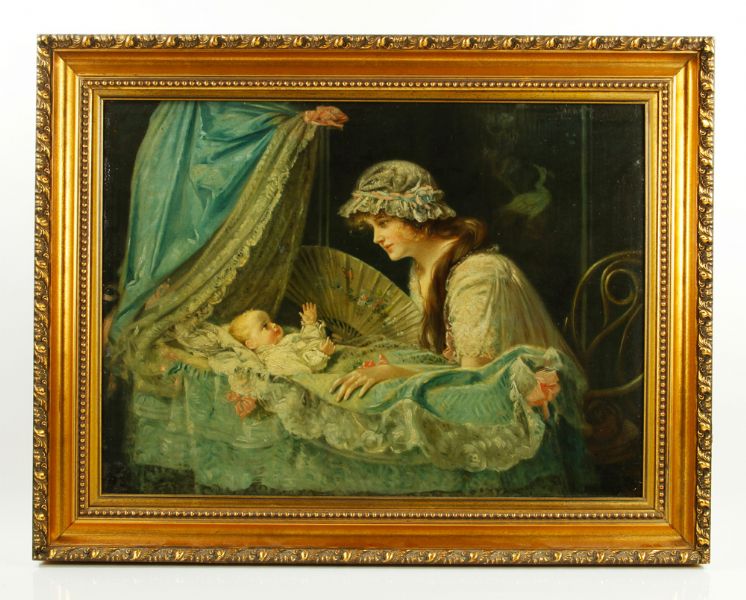 mother with baby in cradle