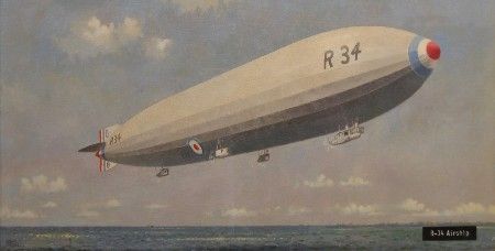R-34 Airship, in flight over water