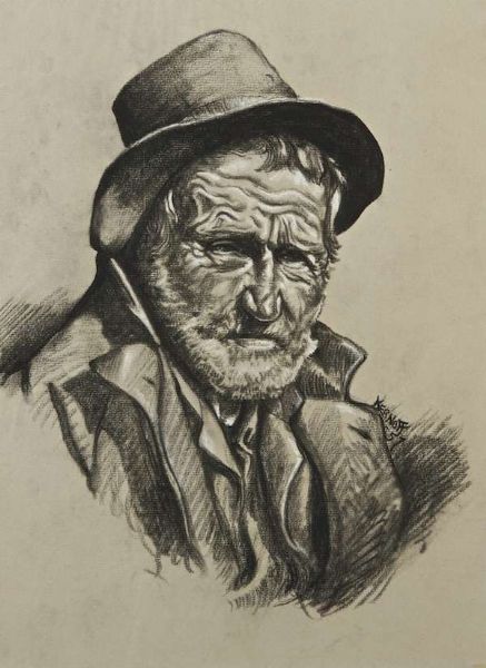 Portrait of 'Trap' Johnston Charcoal, heightened with white