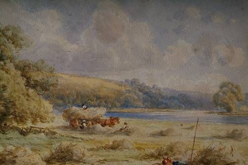 On the Thames above Windsor, and another similar, a harvesting landscape, a pair