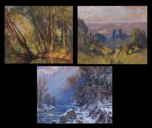 A Set of Three, Snowy Riverscape, Autumn Tree and The Valley