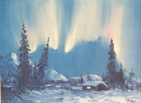 Alaskan Sled Dogs in the Snow and Northern Lights