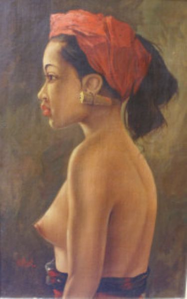 Head and shoulders portrait of an Indonesian lady in profile