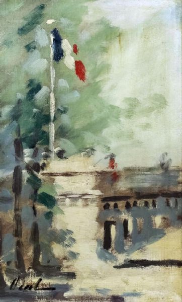 French river scene with bridge