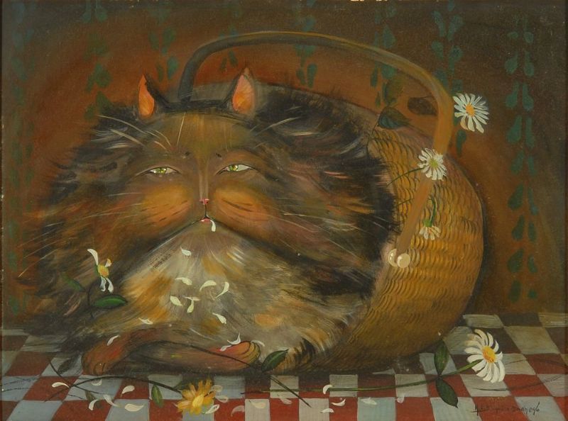 Cat in a Nantucket basket