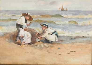 CHILDREN BUILDING SAND CASTLES