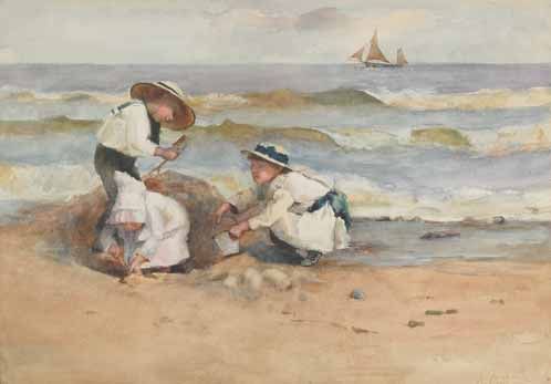 CHILDREN BUILDING SAND CASTLES