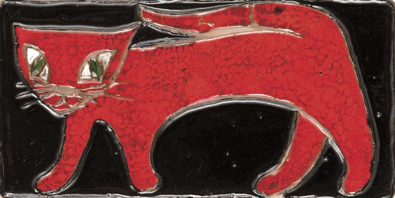 Kachel schwarz, rote Katze