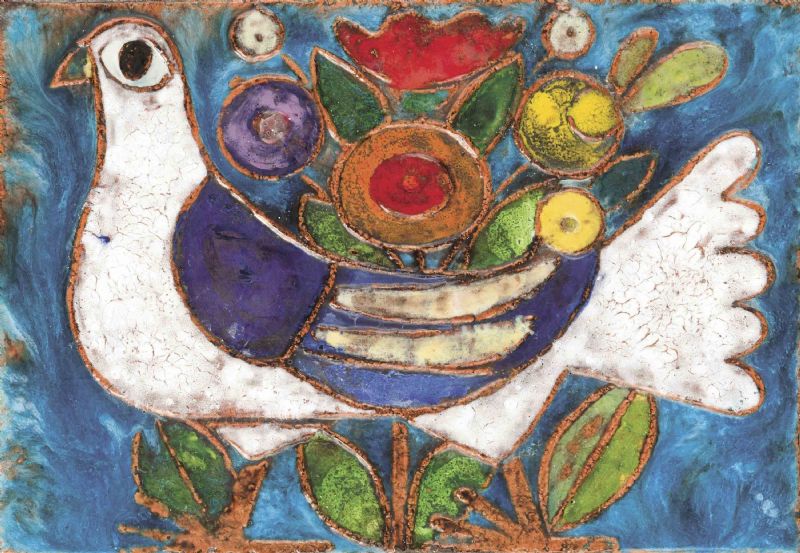 Wandbild mit weisser Taube und Blumen