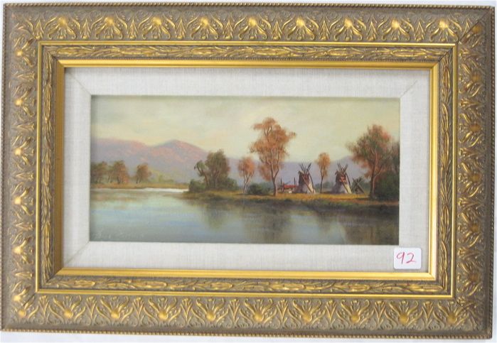 | An Indian encampment in late fall along a river in the Teton Mountains | |
