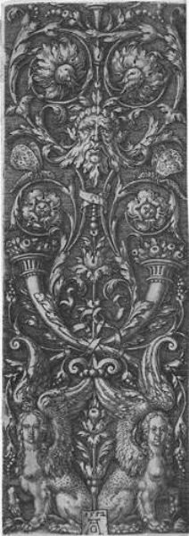 entspringen - Ornamentstafel mit zwei Sphinxen