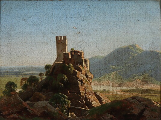 | A sunlit ruin in an Italian mountain landscape | |