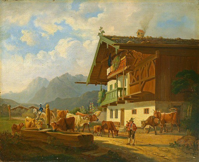 Oberbayerische Gebirgslandschaft mit malerischem Gehöft