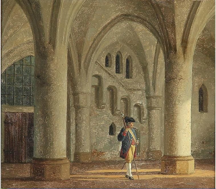 A lackey in a hall with arches