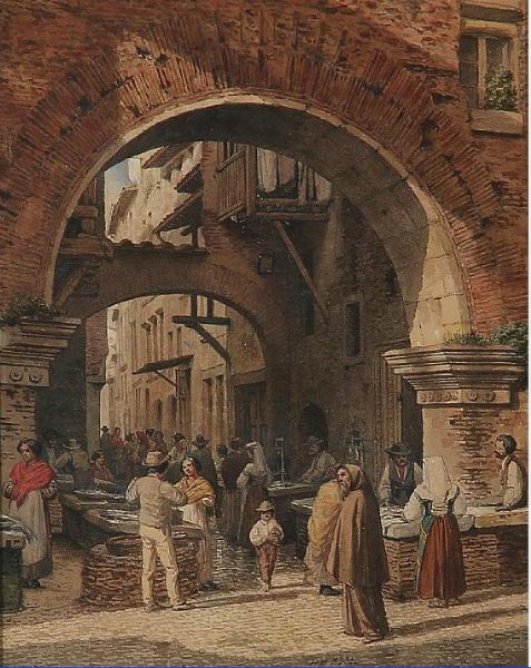 Scene from a fish market in Rome.