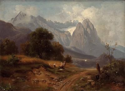 Die Alpspitze und das Zugspitzenmassiv mit Personenstaffage