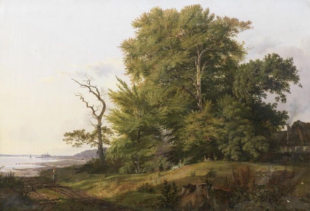 | Wooded landscape with huntsman and hounds, a view of Kronborg castle beyond | |