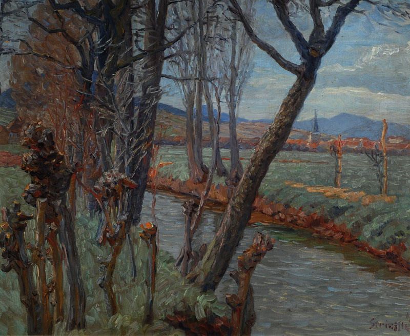 | View from the Queichwiesen of Landau seen after Siebeldingen, typical wide brushstroke in mixed color palette, typical for the t | |