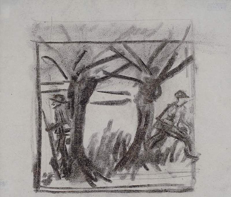 Kohlezeichnung, Die beiden Sonntagsjäger
