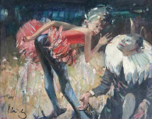 Hinter den Kulissen, Ballerina und kostümierter Mann