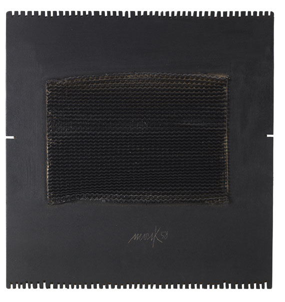 | Unknown Relief. Black lacquered corrugated board on black wooden plate. | |
