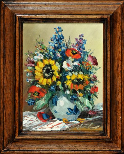 Bunter Blumenstrauß mit Mohn- und Sonnenblumen in Vase