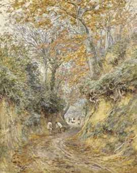 Raking the leaves, Hollow Lane, Witley, Surrey